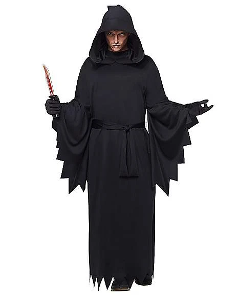 Complete your mysterious Halloween night look with this Hooded Black Robe Costume! Whether you’re suiting up as the Grim Reaper, a dark wizard, or a horror movie slasher, this long, black robe will perfectly complete any mysterious costume.