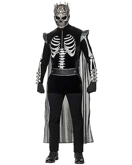 Become the king of Halloween when you wear this adult skeleton king costume. The included shirt features bone detail that will have you standing out in every crowd you enter. Add the included belt, mask, and gloves for a completed costume that will have you looking and feeling like royalty.