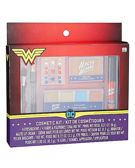Transform your look into something wonderful with this officially licensed DC Comics Adult Wonder Woman Makeup Kit! Featuring bold lip cream, shimmering eyeshadow, and so much more, this makeup kit will make your transition into Wonder Woman a breeze!