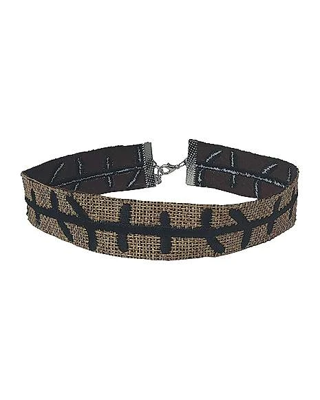 Scare with flair this Halloween! Stitched with style, this burlap choker is the perfect accessory for any chic scarecrow.