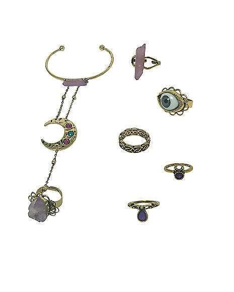 Add some bling to your fortune teller costume with this set of dazzling jewelry! With five captivating rings and an alluring jewel-lined bracelet, you’ll be the most glamorous fortune teller around.