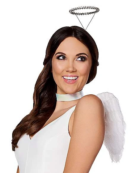 Glow like the angel that you are when you add these iridecent wings, halo headband, and choker necklace to your costume this Halloween.