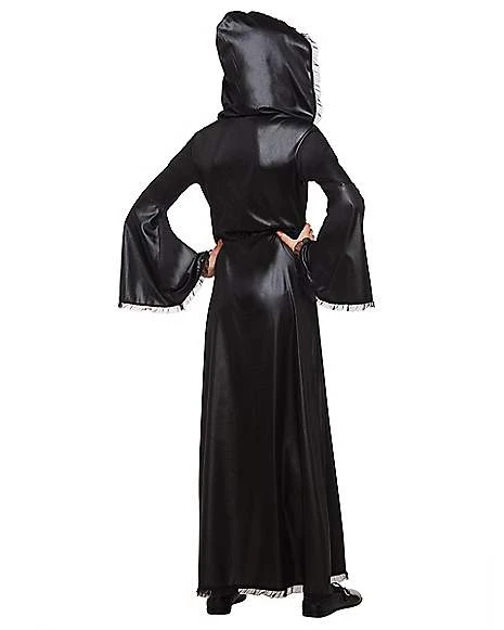 Your child will go absolutely batty when they wear this gorgeous Vampiress costume! The black dress is hooded and features red accents in the center and down the length of the skirt, and glittery bats cover the red to give the dress an even more hauntingly fabulous design.