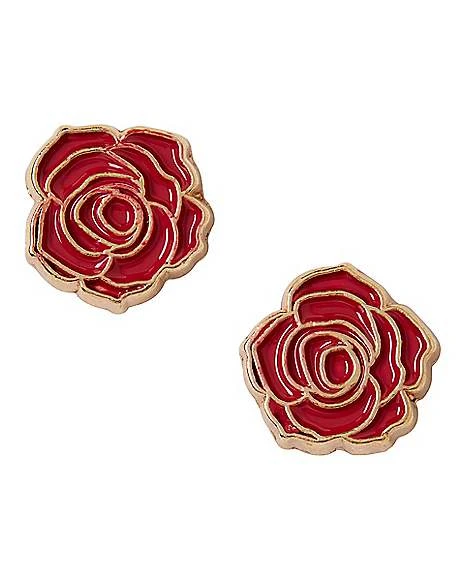 Begin your very own tale as old as time with this beautiful jewelry set! This officially licensed set includes an enchanting goldtone necklace, which is finished with a rose, as well as two matching rose earrings. Show your love for Beauty and the Beast with these lovely earrings!