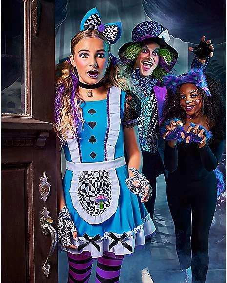 For a fun, new take on Alice, this Kids Dark Alice Dress Costume is the perfect combination of enchanting and edgy. This costume features a blue dress, a matching headband, purple striped tights, and a black choker. Go down the rabbit hole with a fresh new look on Halloween night with this cute costume!