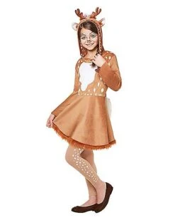 Oh deer! This hooded dress will make you the finest fawn in all the forest. A hood with attached antlers and faux fur trim put this dress at the head of the herd!