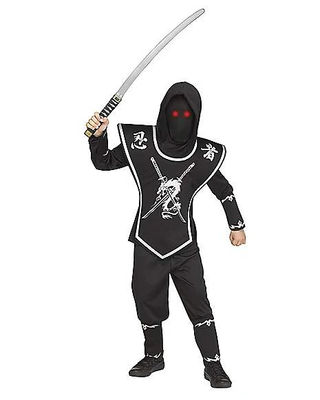 Light up the night with this kids’ ninja costume. Not only will this costume always ensure that you’re ready for battle, it’ll light up the night instantly! The included shirt, pants, tunic, arm guards, and leg guards will protect you in all battles, but the light-up glasses will become your secret weapon!