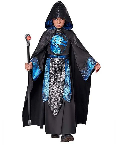 Your little one will become a master of witchcraft and black magic when they put on this epic Mystical Warlock Costume! This costume includes a long-sleeved black robe with an attached tabard and a hooded cape, giving them everything they need to cast spells this Halloween.