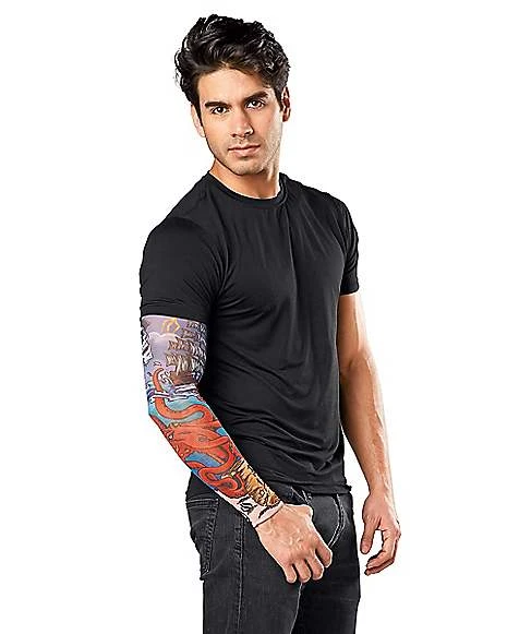 Ahoy, matey! Complete your beastly buccaneer costume with this pirate tattoo sleeve. Put it on and get ready to sail the seven seas this Halloween!