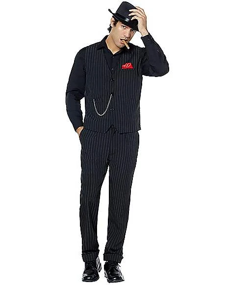Join the heist. Let everyone know you’re a bad guy when you strut your stuff in this pinstriped gangster vest! The attached red pocket square and chain detail will show everyone that you mean business!