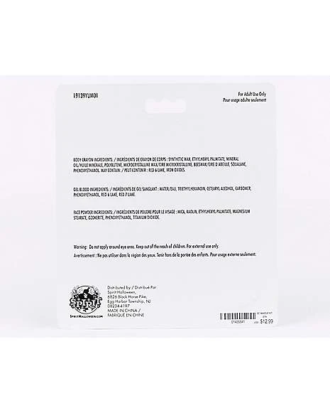 Welcome to the twisted circus! This scary clown makeup kit is the perfect way to make your scary clown costume even more terrifying! With two body crayons, white face powder, fake blood and a sponge, you’ll be able to get the look you’ve been dreaming of.