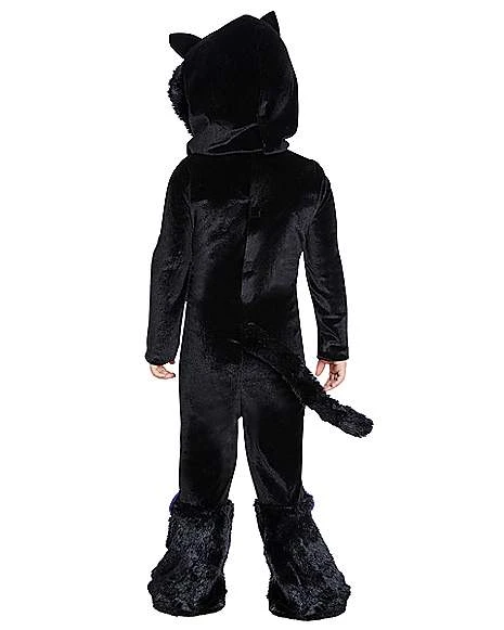 Meow is the time to give your little girl a special treat when you dress her in this Kitty Bodysuit Toddler One Piece Costume. She’ll be safe and warm while trick-or-treating all night in this soft fur jumpsuit with flared pant and attached tail, shimmery silver tummy, bow tie and furry hood with cute little ears.